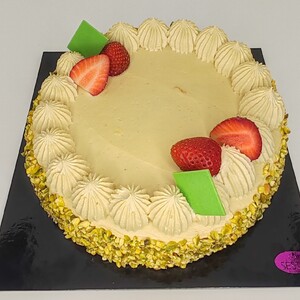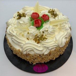 Pandispagna ripieno di crema e gocce di cioccolato ricoperto da panna